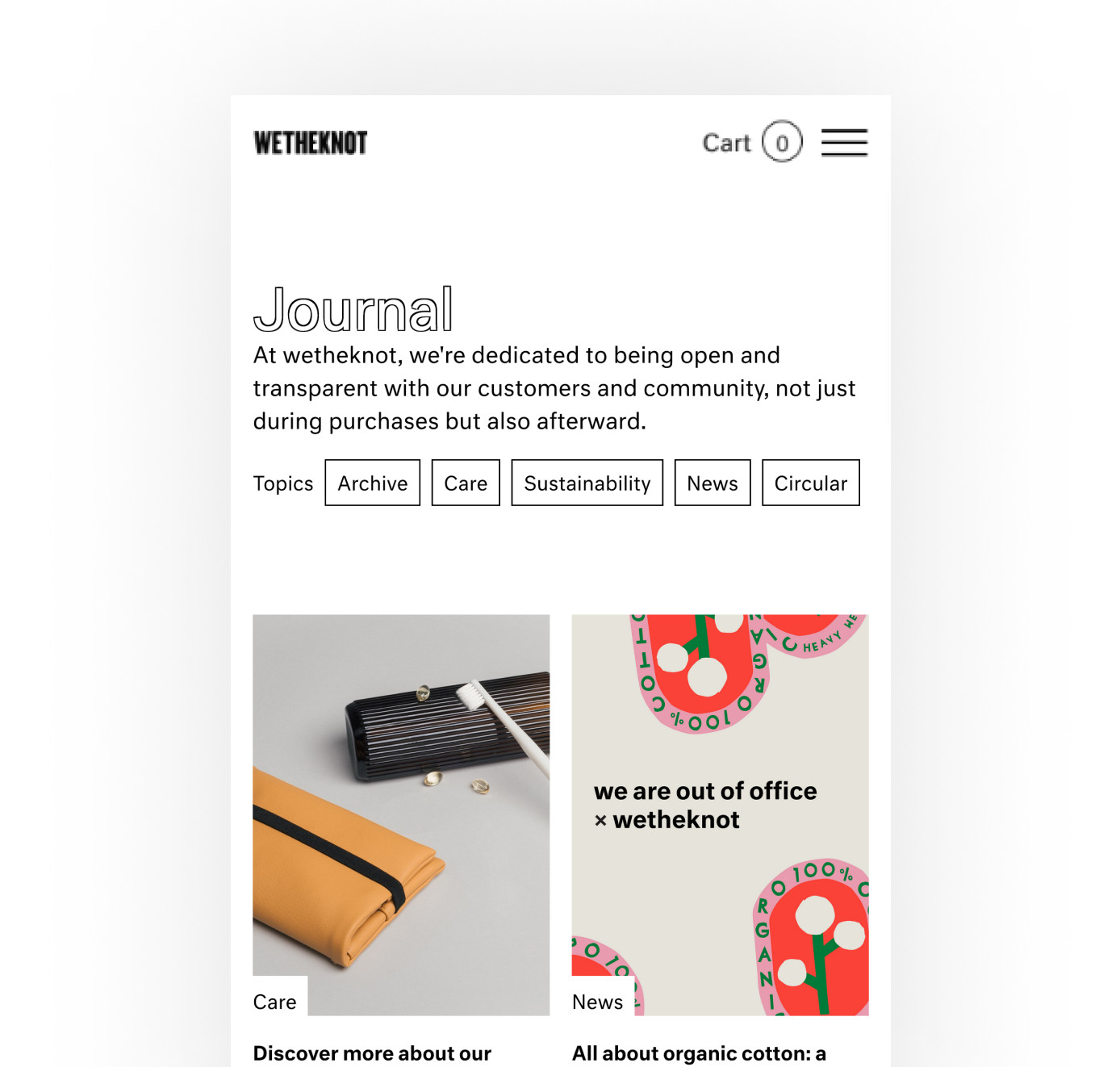wetheknot is a fashion brand based in Lisbon, Portugal, with a quality over quantity ethos, and no interest in trends or seasonal collections. By sourcing local materials, producing as little waste as possible, and making their customers think about the impact of their choices, the brand aims to find sustainable solutions at every step of production. They contacted us to elevate their online shop experience because their exciting WooCommerce-based platform was becoming very slow and cumbersome to manage. They were also concerned about the website's environmental impact and wanted to address those issues as well.